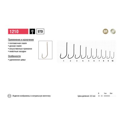 | 1210-NI-6-F10 | Крючки одинарные | №6 | Ni | 10 |