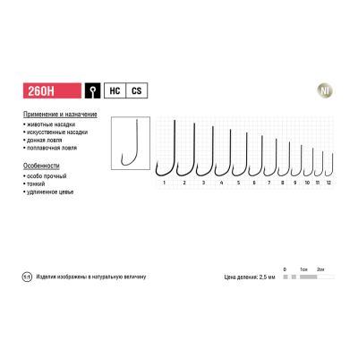 Крючки Maruto 260 - специальный крючок с удлиненным цевьём. Особо прочный при тонкой проволоке. Подходит для для поплавочной и донной ловли. Может использоваться для ловли на растительные и животные насадки, а также для оснащения искусственных приманок.