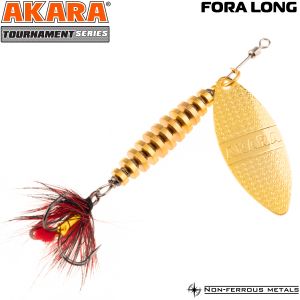 Akara Tournament Series Fora Long - классическая вертушка с лепестком в форме эллипса, имеет несколько инновационных решений, которые еще не применялись на других моделях. Лепесток вертушки спроектирован с цилиндрическим изгибом. Именно такая форма изгиба обеспечивает практически идеальное вращение. Тело сердечника выполнено из наборных элементов, имеющих свободу перемещения по оси. Во время движения вертушки между отдельными дисками возникают завихрения воды, что может послужить дополнительной мотивацией, провоцирующей рыбу на поклевку. Угол раскрытия лепестка, частота его вращения и общий вес данной модели позволяют использовать эту блесну на течении. Вертушка может быть рекомендована для ловли самых разноплановых хищников от щуки и окуня до форели и хариуса.