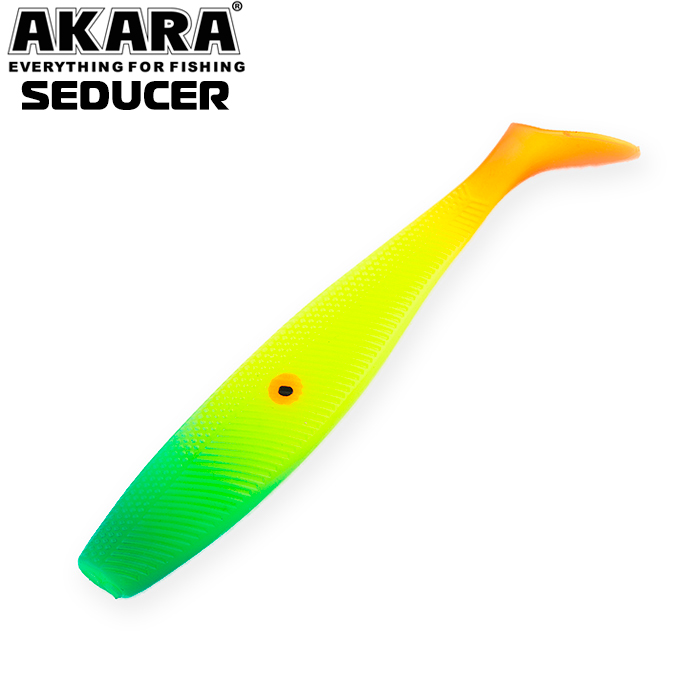 Akara Seducer - cерия крупных виброхвостов в форме рыбки, в оригинальных расцветках. Приманка отлично работает по щуке, судаку и сому. Оснащается джигом, шарнирными монтажами и снасточками для мертвой рыбки. Выпускается в размерах 100 и 130 мм.