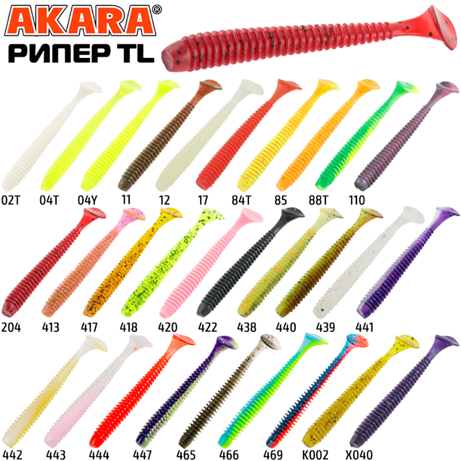Akara Tail TL - линейка популярных виброхвостов с ребристым телом и очень подвижным хвостом. Благодаря своей форме, приманка моментально заводится и прекрасно играет даже при очень медленной проводке, а ребра на теле производят в воде поток низкочастотных колебаний, которые привлекают рыбу. С Akara Tail можно использовать весь набор приемов проводки, и равномерную проводку на разных скоростях, и разные комбинированные проводки с подбросами, твичингом и паузами. Широкий размерный ряд делает эту приманку поистине универсальной: крупные виброхвосты отлично работают по судаку и щуке, а пятисантиметровые рипперы с успехом ловят окуня. Как правило, оснащается обычным джигом или чебурашкой с офсетом или одинарным крючком. Выпускается в размерах 50, 75, 95, 100 и 115 мм.