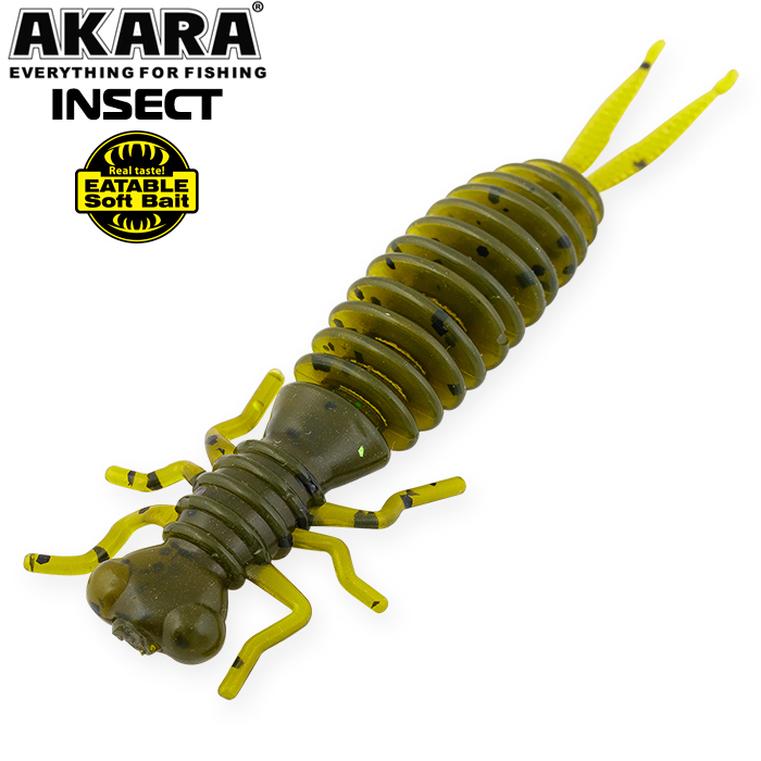 Силиконовый съедобный твистер Akara Eatable Insect похож на личинку стрекозы, который предназначен для микроджиговой ловли, игра приманки лучше всего раскрывается при коротких подергиваниях и волочением по дну, периодически выдерживая паузы. Предназначена для ловли окуня, голавля и щуки.