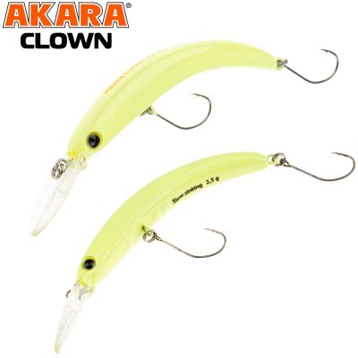 Воблер Akara Clown в первую очередь предназначен для ловли форели, но также может успешно применяться для других видов хищных рыб. Отличается широким ассортиментом расцветок, что позволяет подобрать приманку под различные условия ловли и капризную рыбу. Благодаря изогнутому телу и достаточно крупной лопасти, воблер обладает своеобразной активной игрой. Разработан для медленной и очень медленной проводки, включая равномерную проводку и проводку с паузами. Эксперты по форелевой рыбалке и рыболовы, опробовавшие Akara Clown, положительно оценивают эту приманку, особенно отмечая ее эффективность при ловле капризной форели, когда другие приманки оказываются неэффективными.
