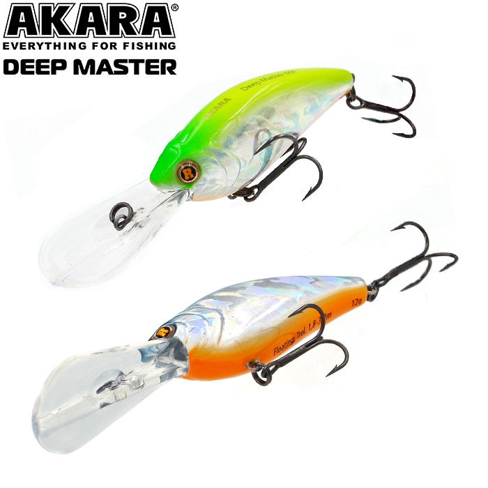 Deep Master 60F - универсальный воблер класса кренк, который можно использовать как для ловли в заброс, так и для троллинга. Высокочастотная активная игра позволяет воблеру ловить абсолютно все, от голавля и жереха, до сома, щуки и даже лосося. Плавающий. Акустический. Заглубление при кастинге 1,0 до 1,5 м, при троллинге 1,8 до 3,2 м.