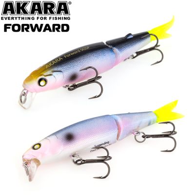 Akara Forward 90SP – двухсоставной воблер нейтральной плавучести (SP) класса минноу. Вес 8 грамм. Имеет маленькую лопасть, что позволяет заглубляться данной приманке от 0,5 до 1,0 м. Отлично подходит для облавливания небольших глубин, окошек в водной растительности. Щука и окунь являются основными объектами ловли этим воблером. Обладает стабильной игрой на рывковых проводках, также работает на равномерной. Оснащен крючками из высокоуглеродистой стали.