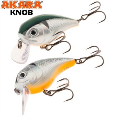 Воблер Akara Knob - упитанное тело воблера и широкая лопата сразу выдают в нем голавлинный кренк. Воблер отлично держит струю и хорошо подходит для ловли на течении. При быстрой проводке приманка полностью заглубляется в подповерностном слое. При медленной проводке приманка играет на самой поверхности оставляя за собой хорошо выраженные усы. Дополнительно воблер обладает шумовым эффектом. Помимо ловли голавля Akara Knob хорошо подойдёт для ловли прудовой форели при ее активности в верхних слоях воды. Плавающий. Акустический. Заглубление при кастинге 0 до 0,2 м.