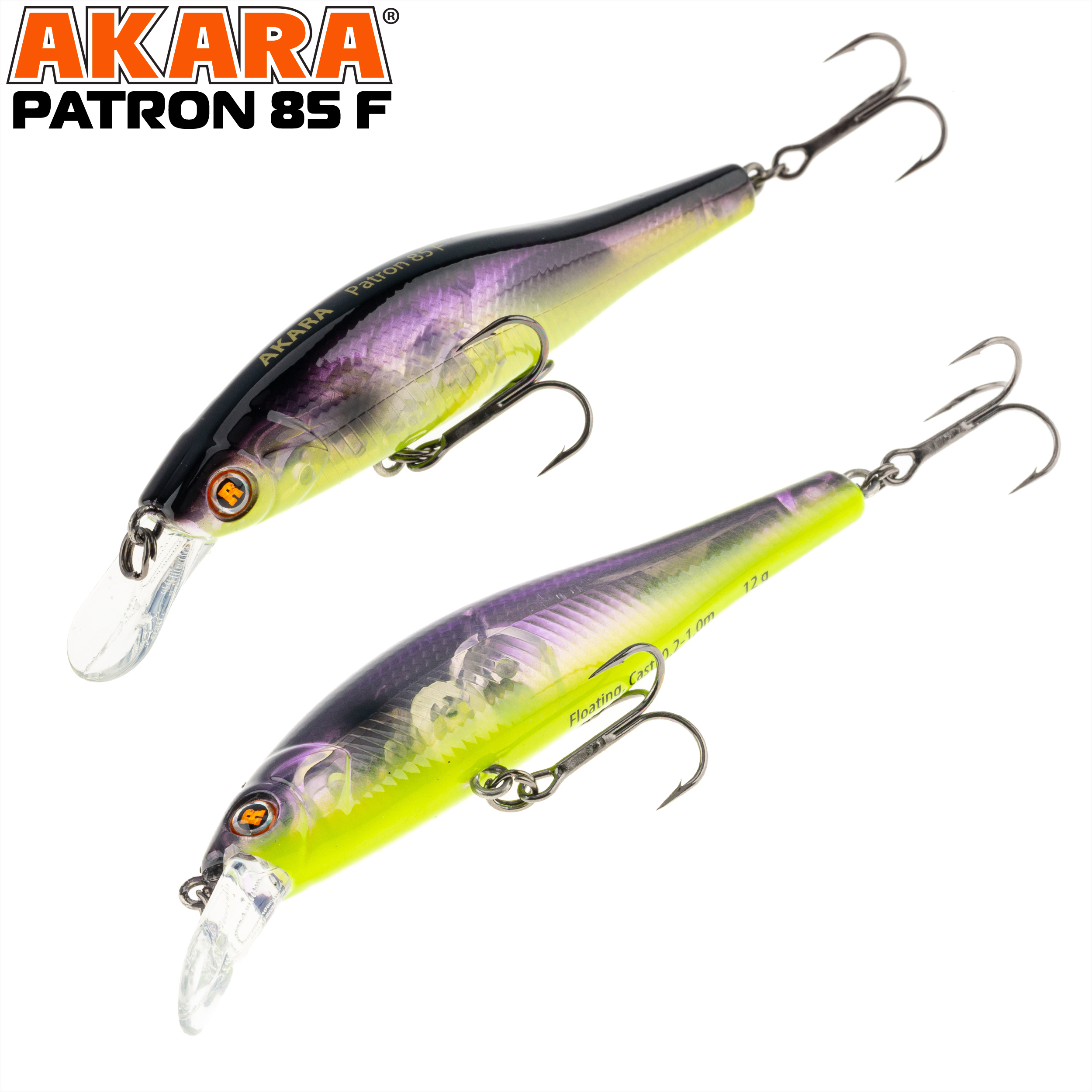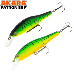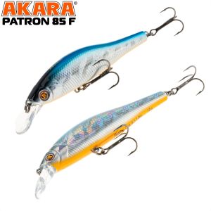 Воблер Akara Patron 85F представляет собой не совсем классический воблер класса "minnow", а скорее напоминает сильно вытянутый воблер типа "shad". Довольно высокий в "холке" и в то же время зауженный в хвосте, воблер обладает очень интересной, неповторимой игрой, не похожей на игру классической "миношки". Воблер очень аппетитно виляет боками даже на самой медленной равномерной проводке. В то же время он уверенно ведет себя на твичинге, но все таки он максимально реалистично играет на небольших скоростях проводки. Соответственно, эта приманка будет безотказна именно при ловле пассивного, прибитого хищника, который не готов гонятся за приманкой, а которого нужно соблазнить на поклевку. Основное предназначение этого воблера - это ловля щуки в стоячей воде или на реках с небольшим течением. Но в других обстоятельсвах его можно использовать и при ловле судака, окуня или жереха.
