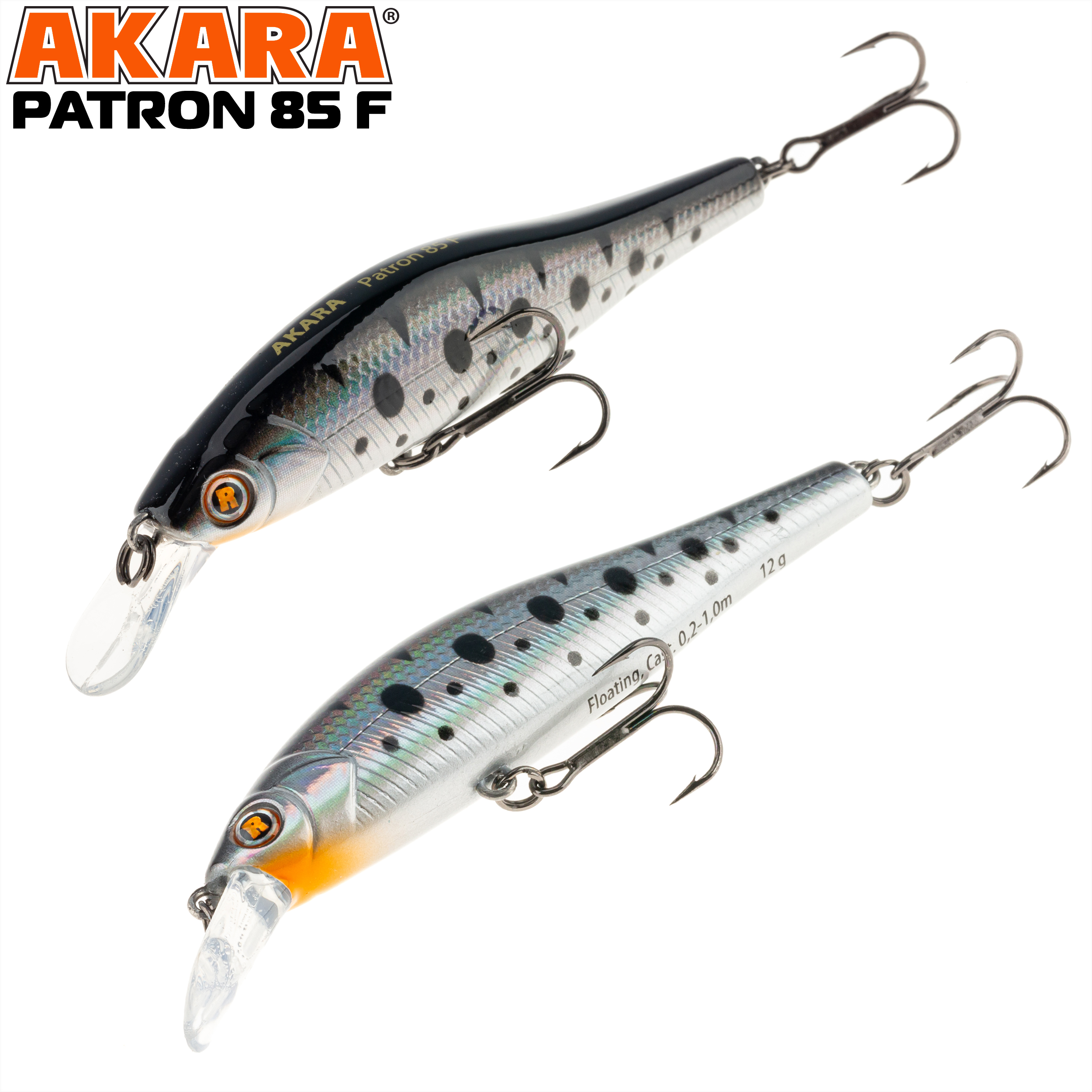 Воблер Akara Patron 85F представляет собой не совсем классический воблер класса "minnow", а скорее напоминает сильно вытянутый воблер типа "shad". Довольно высокий в "холке" и в то же время зауженный в хвосте, воблер обладает очень интересной, неповторимой игрой, не похожей на игру классической "миношки". Воблер очень аппетитно виляет боками даже на самой медленной равномерной проводке. В то же время он уверенно ведет себя на твичинге, но все таки он максимально реалистично играет на небольших скоростях проводки. Соответственно, эта приманка будет безотказна именно при ловле пассивного, прибитого хищника, который не готов гонятся за приманкой, а которого нужно соблазнить на поклевку. Основное предназначение этого воблера - это ловля щуки в стоячей воде или на реках с небольшим течением. Но в других обстоятельсвах его можно использовать и при ловле судака, окуня или жереха.