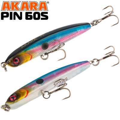 Воблер Akara Pin - даже при ловле в окуневых котлах не всегда получается удачная рыбалка. Чаще всего это происходит потому, что приманка сильно отличается от малька, за которым охотится окунь. Не обязательно попасть в цвет, но форма и размер приманки должны соответствовать пищевому объекту окуня. Akara Pin здесь приходится очень кстати. Стик рассчитан на рывковую проводку с паузами. На паузах приманка тонет и покачивает боками, изображая обессилившую добычу. Полосатый разбойник не может устоять против такого приема. Тонущий.