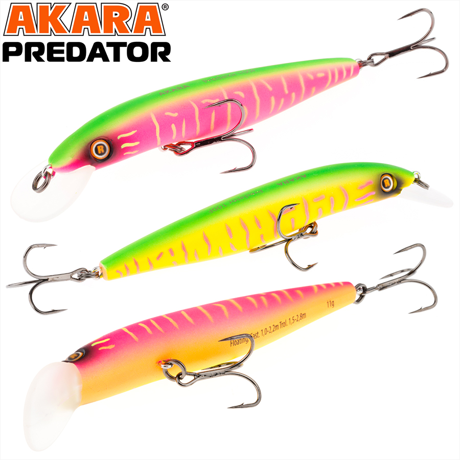 | Категория | Троллинговые воблеры | Троллинговые воблеры | Троллинговые воблеры | Размер, мм | 85 | 100 | 125 | Вес, гр | 8 | 11 | 21 | Заглубление от, м | 0,6 | 1 | 1,5 | Заглубление до, м | 1,8 | 2,8 | 3,5 | Тип плавучести | floating | floating | floating | Система дальнего заброса | нет | нет | нет | Шумовые эффекты | есть | есть | есть | Цвет | A1 | A23/59 | A207/161 |