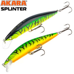 Akara Splinter - воблер класса минноу. Прекрасно подходит для твичинговой ловли. На равномерной проводке, имеет высокочастотную игру, которая отлично провоцирует рыбу к атаке. Благодаря компактной форме и весу, воблер очень хорошо летит, что позволяет осуществлять дальние забросы. Рекомендуется для ловли судака, окуня, щуки и других хищников. Тип плавучести - тонущий (S). Воблеры выполнены в двух размерах: 65мм - 5г, 80мм - 7,5г.