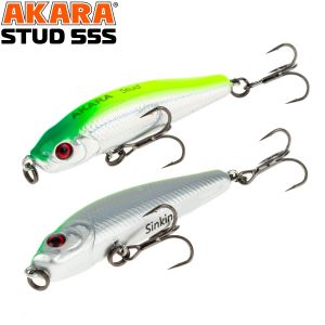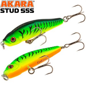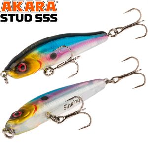 Воблер Akara Stud - ловля окуня в поверхностном слое воды - это конек Студа. Компактный тонущий стик позволяет сделать бальный и точный заброс в точку, где мгновение назад в погоне за мальком плюхнул окунь. Если все сделать быстро, то окунь не устоит и переключит свое внимание с удирающего малька на аппетитный стик. Устоять перед такой приманкой очень сложно. На паузе стик тонет лениво покачивая боками, провоцируя полосатого на атаку. Но и когда активность окуня на поверхности исчезла, не торопитесь менять приманку. Окунь, скорее всего, никуда не ушел. Он здесь же, но опустился ко дну. Выдерживая большие паузы между рывками можно обновить и придонные слои воды. И если приманка окажется в зоне реакции окуня, то он схватит ее и около дна. Тонущий.