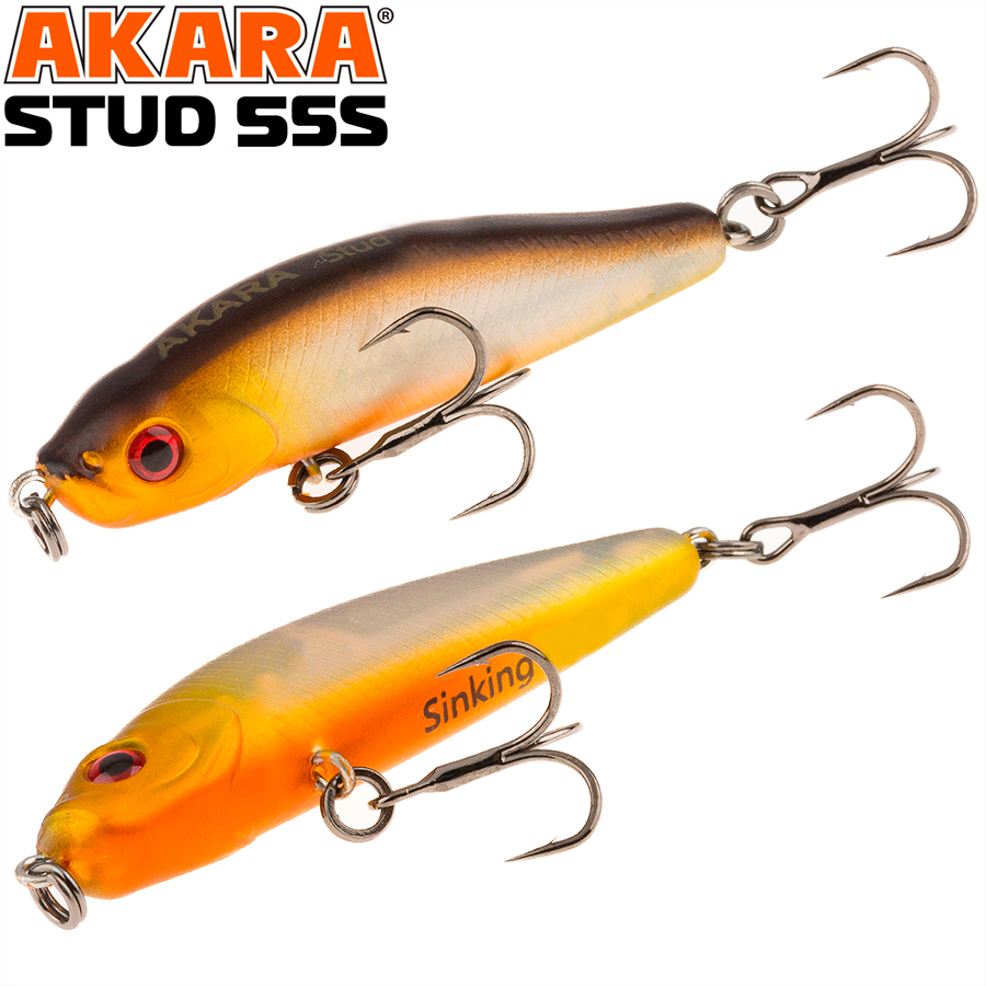 Воблер Akara Stud - ловля окуня в поверхностном слое воды - это конек Студа. Компактный тонущий стик позволяет сделать бальный и точный заброс в точку, где мгновение назад в погоне за мальком плюхнул окунь. Если все сделать быстро, то окунь не устоит и переключит свое внимание с удирающего малька на аппетитный стик. Устоять перед такой приманкой очень сложно. На паузе стик тонет лениво покачивая боками, провоцируя полосатого на атаку. Но и когда активность окуня на поверхности исчезла, не торопитесь менять приманку. Окунь, скорее всего, никуда не ушел. Он здесь же, но опустился ко дну. Выдерживая большие паузы между рывками можно обновить и придонные слои воды. И если приманка окажется в зоне реакции окуня, то он схватит ее и около дна. Тонущий.