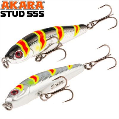 Воблер Akara Stud - ловля окуня в поверхностном слое воды - это конек Студа. Компактный тонущий стик позволяет сделать бальный и точный заброс в точку, где мгновение назад в погоне за мальком плюхнул окунь. Если все сделать быстро, то окунь не устоит и переключит свое внимание с удирающего малька на аппетитный стик. Устоять перед такой приманкой очень сложно. На паузе стик тонет лениво покачивая боками, провоцируя полосатого на атаку. Но и когда активность окуня на поверхности исчезла, не торопитесь менять приманку. Окунь, скорее всего, никуда не ушел. Он здесь же, но опустился ко дну. Выдерживая большие паузы между рывками можно обновить и придонные слои воды. И если приманка окажется в зоне реакции окуня, то он схватит ее и около дна. Тонущий.