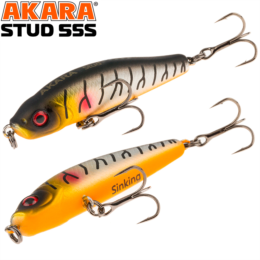 Воблер Akara Stud - ловля окуня в поверхностном слое воды - это конек Студа. Компактный тонущий стик позволяет сделать бальный и точный заброс в точку, где мгновение назад в погоне за мальком плюхнул окунь. Если все сделать быстро, то окунь не устоит и переключит свое внимание с удирающего малька на аппетитный стик. Устоять перед такой приманкой очень сложно. На паузе стик тонет лениво покачивая боками, провоцируя полосатого на атаку. Но и когда активность окуня на поверхности исчезла, не торопитесь менять приманку. Окунь, скорее всего, никуда не ушел. Он здесь же, но опустился ко дну. Выдерживая большие паузы между рывками можно обновить и придонные слои воды. И если приманка окажется в зоне реакции окуня, то он схватит ее и около дна. Тонущий.