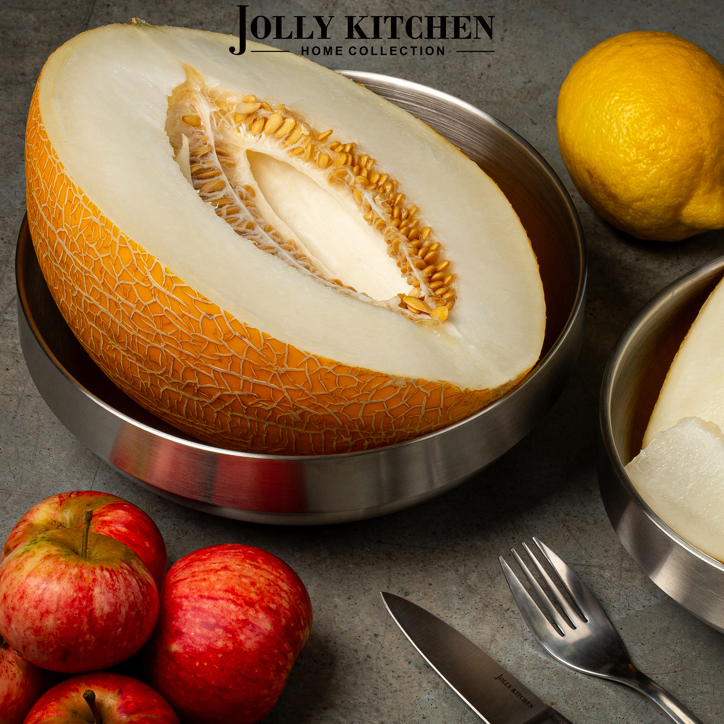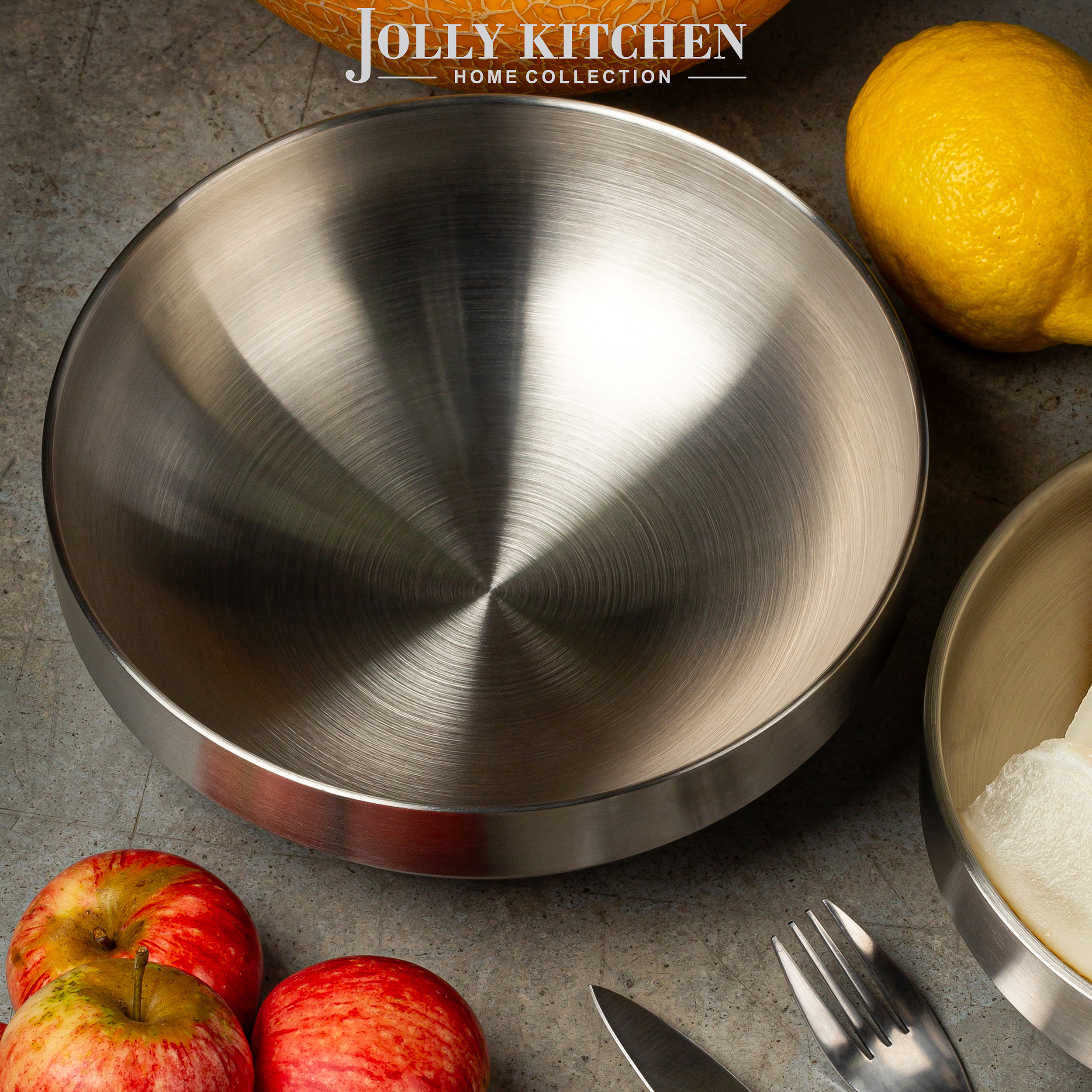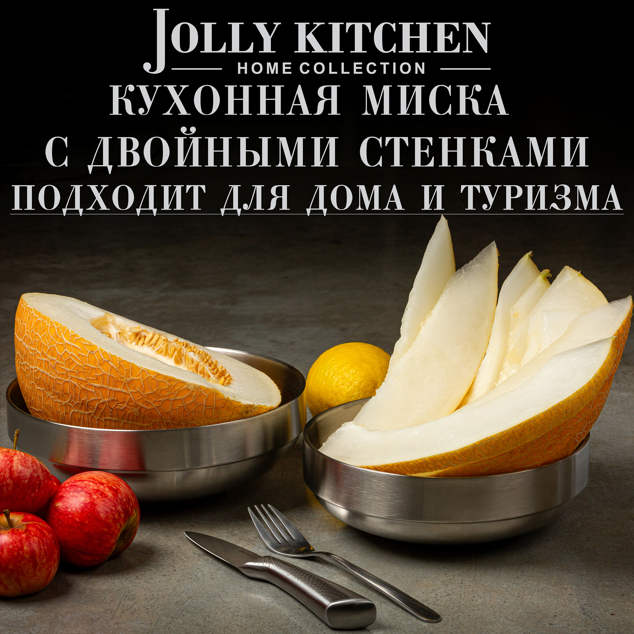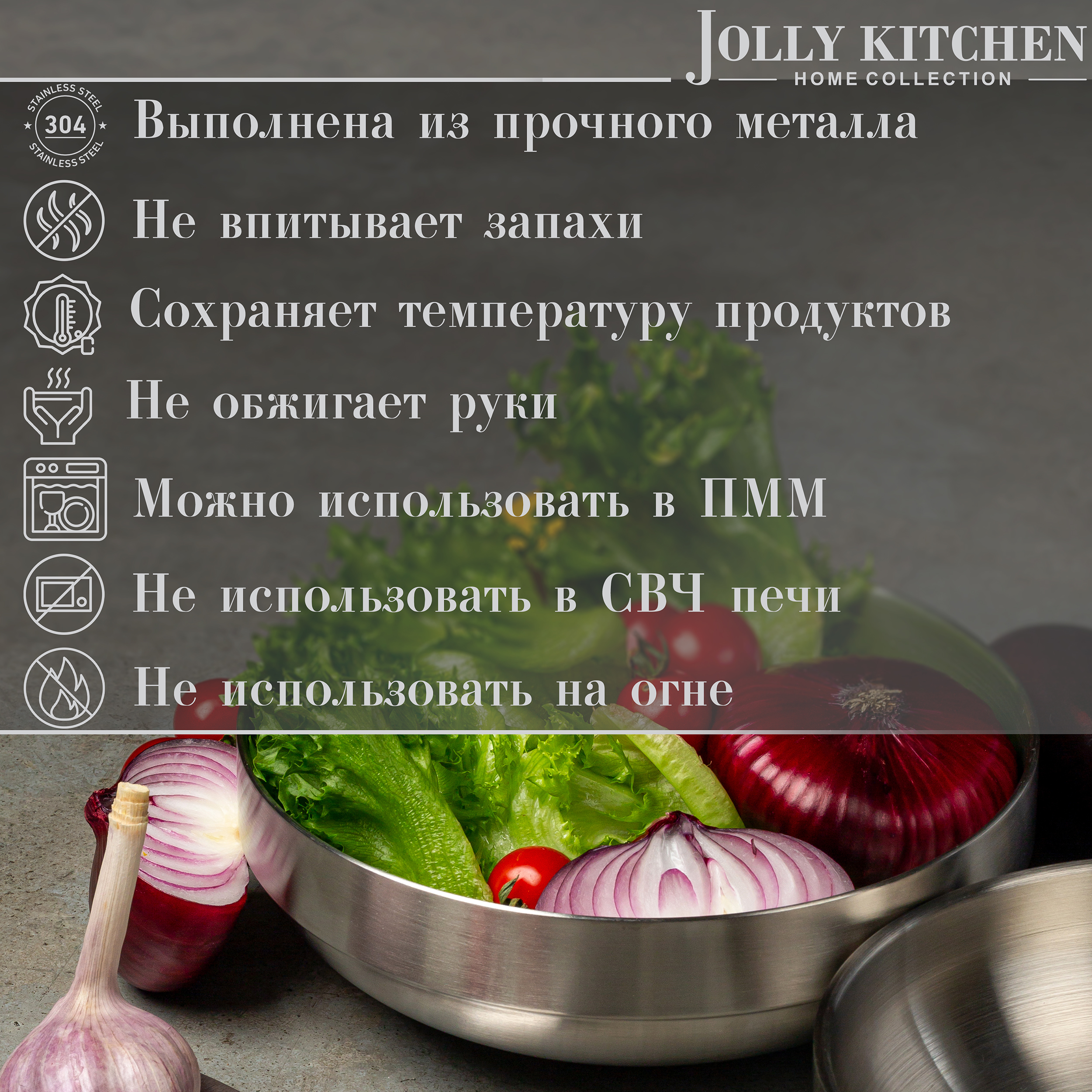 Кухонная миска с двойными стенками Jolly Kitchen — это стильный и функциональный аксессуар, который станет незаменимым помощником на кухне. Она имеет элегантный дизайн с матовой полировкой, что делает её не только практичным, но и красивым предметом сервировки.