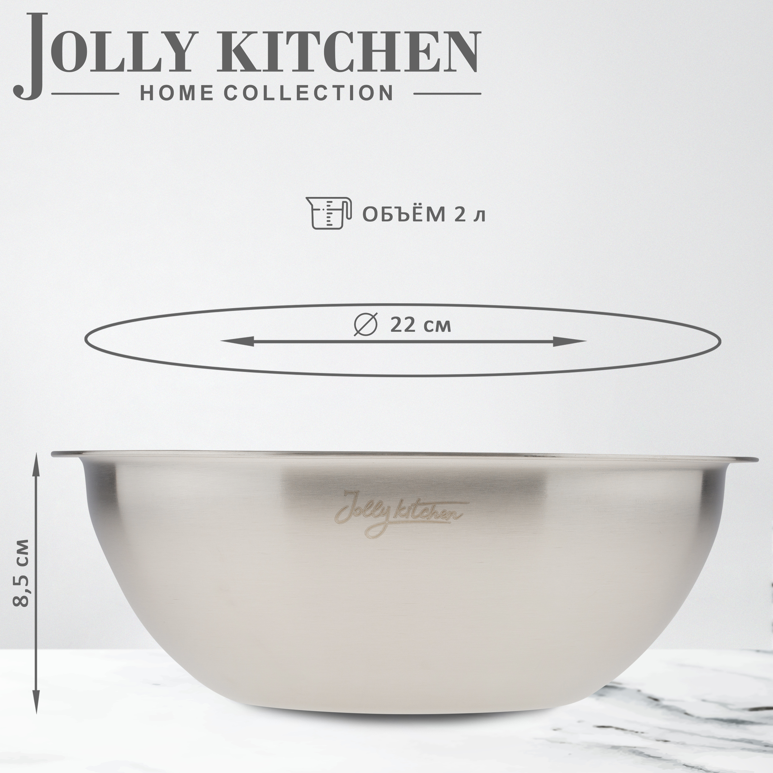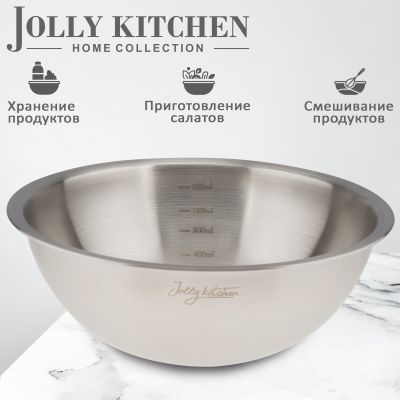 Миска-салатник Jolly Kitchen с мерной шкалой - стильное и практичное решение для современной кухни. Изготовленная из высококачественной нержавеющей стали, она сочетает в себе элегантность и функциональность.