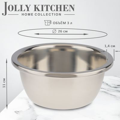 Стильная и функциональная миска-салатник Jolly Kitchen, выполненная из высококачественной нержавеющей стали. Эта миска станет незаменимым аксессуаром в вашей кухне.