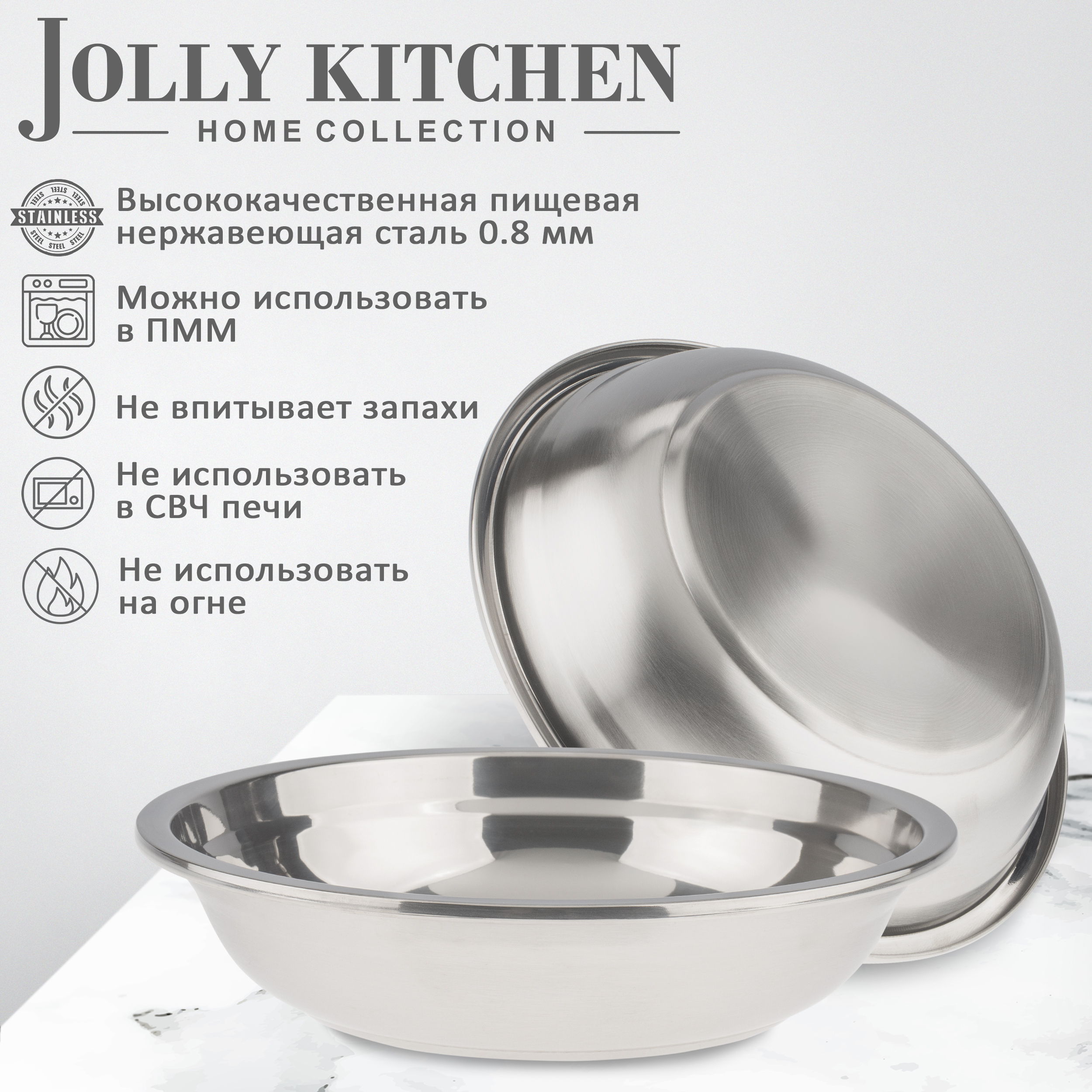 Тарелка Jolly Kitchen из высококачественной нержавеющей стали - идеальное сочетание стиля и практичности для вашей кухни.