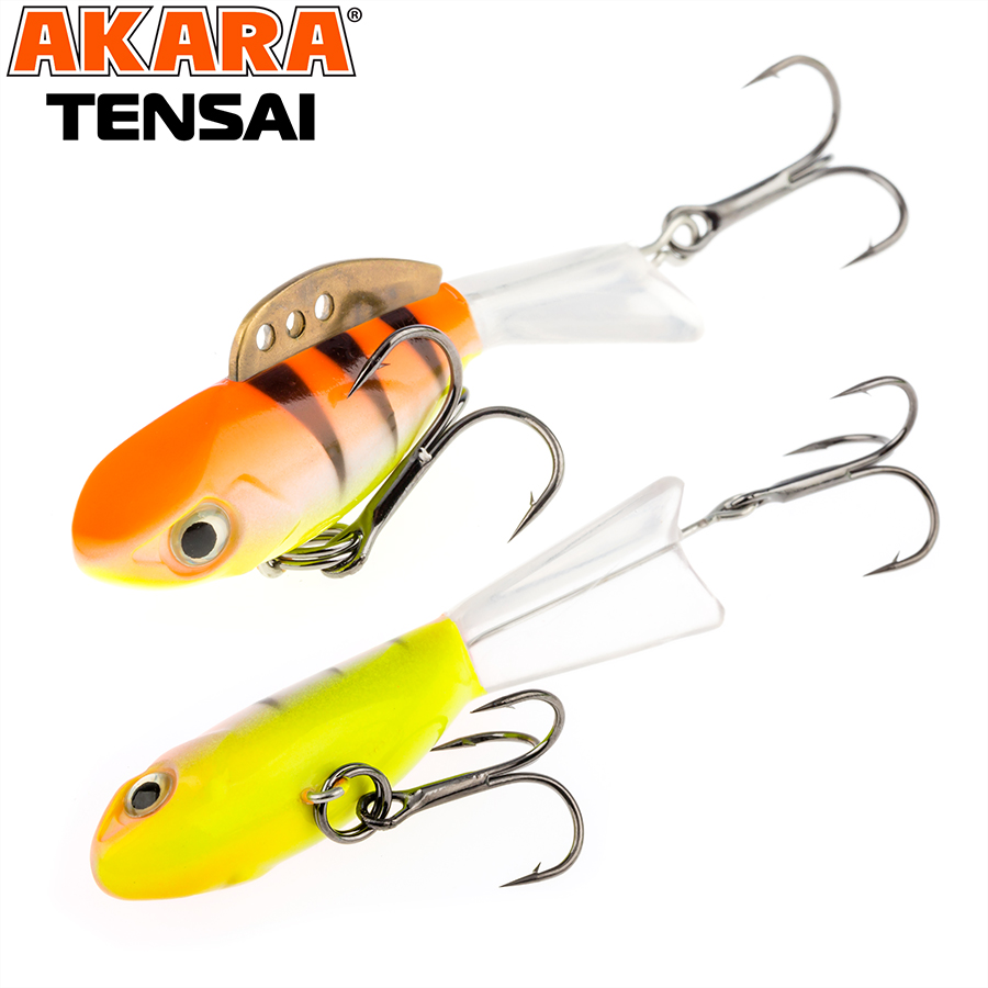 Балансир для отвесной ловли AKARA Tensai. Данный балансир, пластиковый со свинцовым сердечником, разработан для ловли в отвес, как зимой, так и летом. Балансиры Акара Тенсай изготовлены из качественных морозостойких материалов и выпускаются в длине 57 и 67 мм, оснащены высокопрочными крючками и тройниками японской компании Maruto. Все приманки красятся в уловистые цвета, специальными финскими красками. Особенностью данных балансиров является возможность выбора варианта игры в воде. Это достигается за счет трех способов крепления на латунном верхнем плавнике балансира.