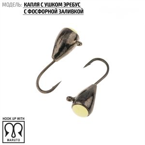 Мормышка вольфрамовая Akara (64p) Капля с ушком эребус с фосфорной заливкой, 3 мм