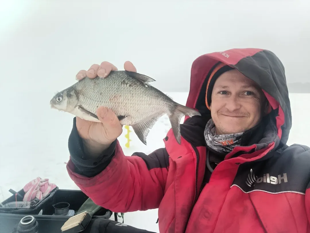 Выбрался перед лютыми морозами на озеро Свирь проверить, как там поживает белая рыба. Специально приехал накануне после обеда, чтобы заранее закормить лунки. Просверлил порядка 10-12 лунок, довольно широко, через всю яму, чтобы был выше шанс зацепиться за рыбу. Кормил как обычно на Свири: две больших кормушки в дно и два больших шара сверху. Где-то часа в три закончил кормить и сразу пошёл проверять лунки. Уже на первой стала мелкая плотва с густерой и активно клевала до самого вечера. Подлещиков влетело лишь парочку, но это и нормально, обычно он более массово подходит только на второй день.