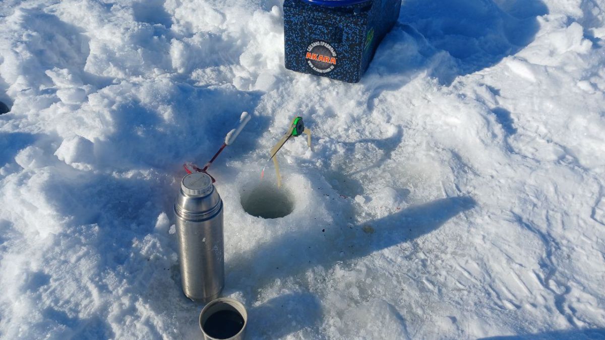 Прибыли на место где-то к 8:30 и практически 2 часа потратили на изучение рельефа, оббуривание и закорм лунок на различных глубинах и установку Володиной палатки.